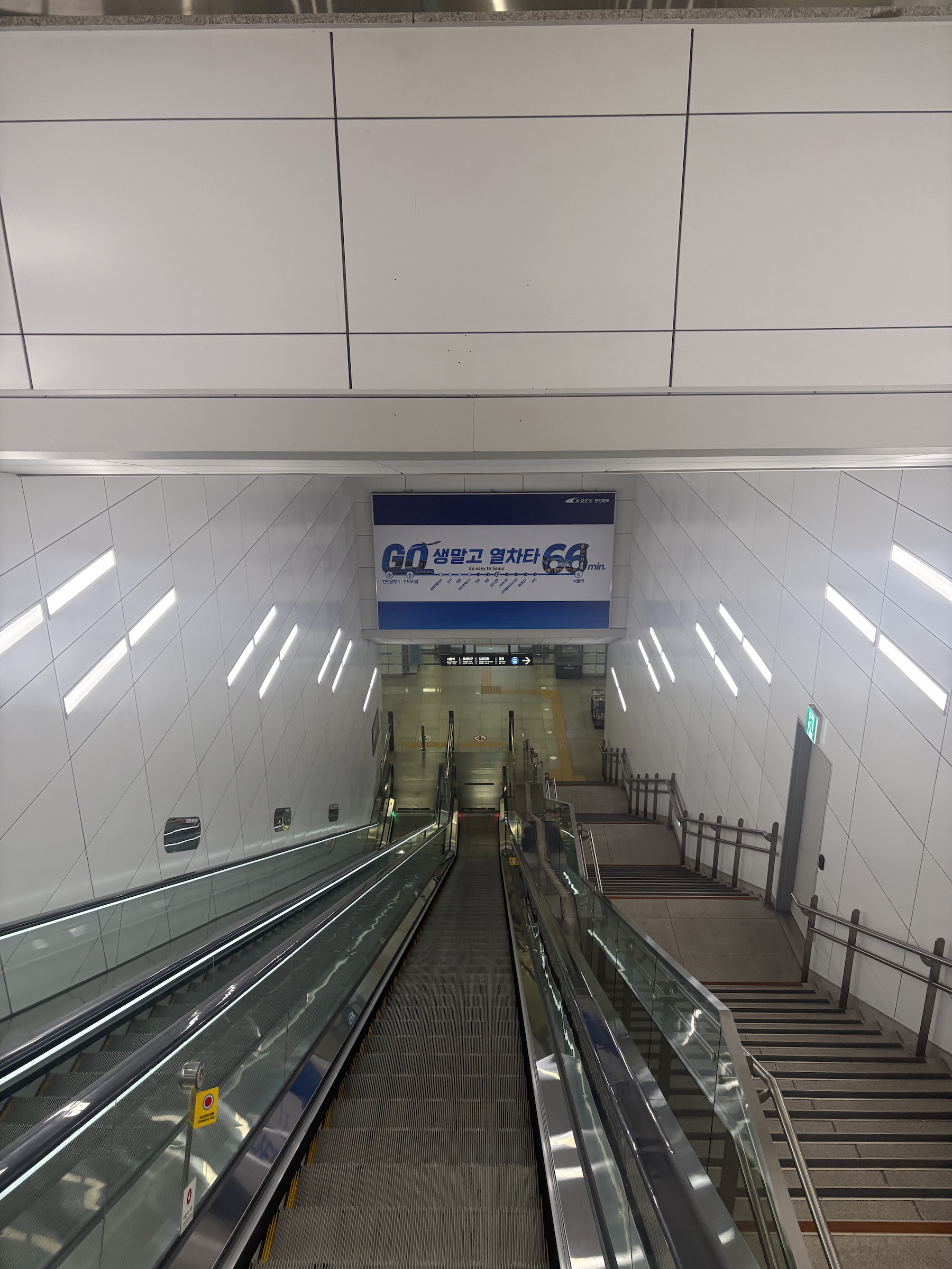 5시 18분 토요일 공항철도 첫차를 타고 집에 왔습니다.