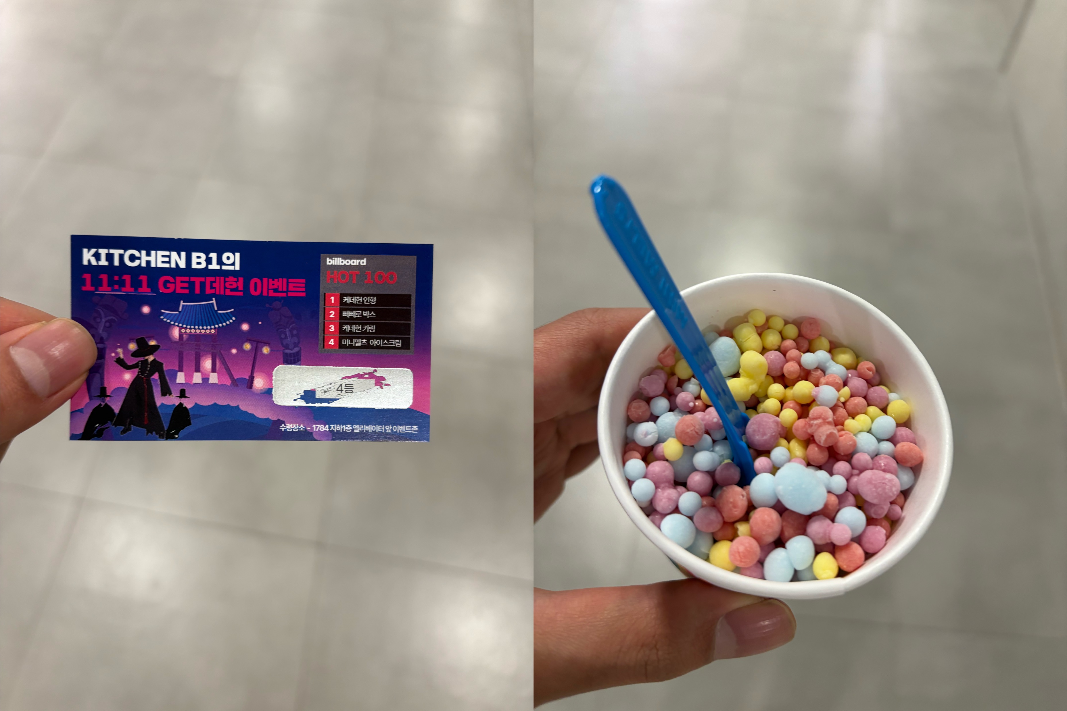 구내식당에서는 소소한 이벤트도 자주 열립니다. 케데헌을 안봐서 잘 모르지만.. 케데헌과 어떤 연관이 있는지는 잘 모르겠지만, 구슬 아이스크림은 맛있게 먹었습니다.