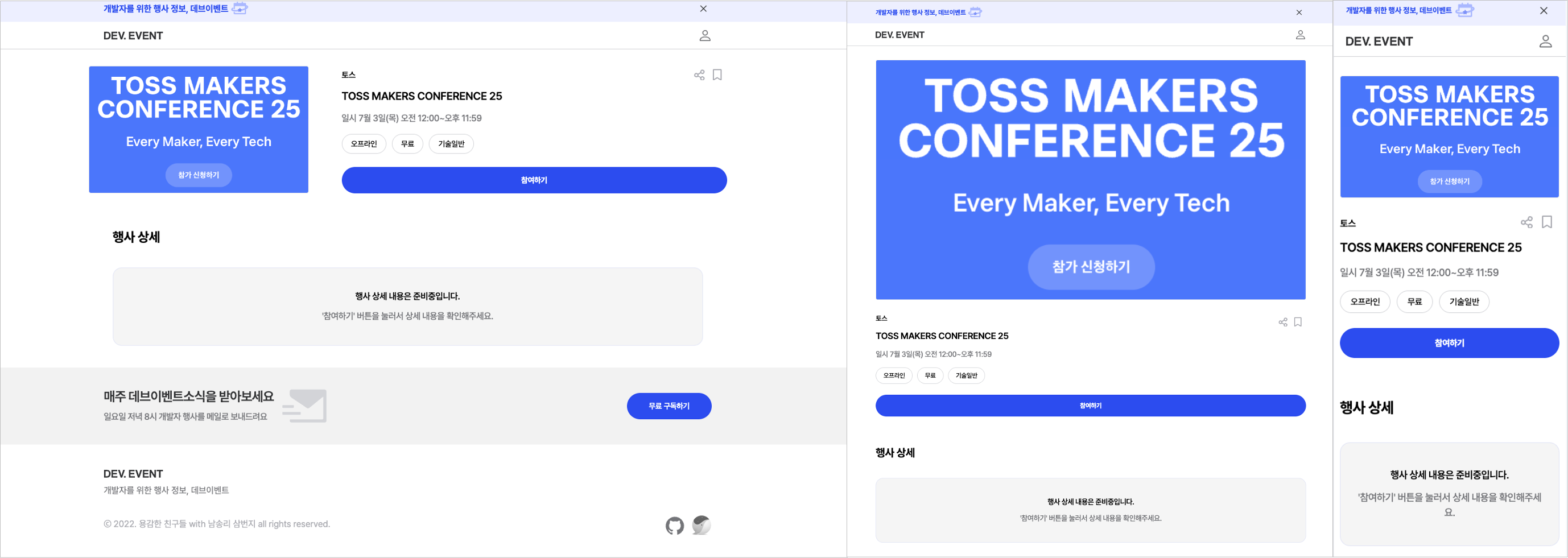 작년 중순부터 준비하던 개발자 행사 상세 페이지도 완성했습니다. 원래는 어드민에서 마크다운 에디터에서 입력하는 방식으로 개발하였으나, 사용 중이던 텍스트 에디터의 버그가 잦아 해당 기능은 제외한 채 배포하게 되었습니다. 개인적으로는 아쉬움이 남는 부분 중 하나입니다.